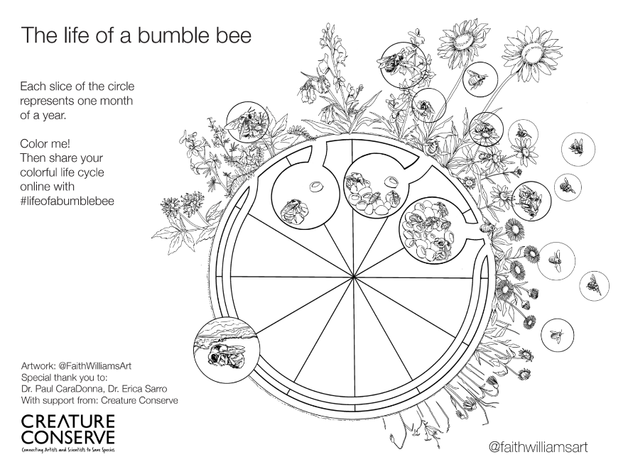 Check out the free downloadable Bumble Bee Lifecycle coloring pages created as part of my Fellowship with Creature Conserve, including collaboration with science groups at the Rocky Mountain Biological Laboratory in Gothic, CO. Additional information about Native Bees Conservation here.