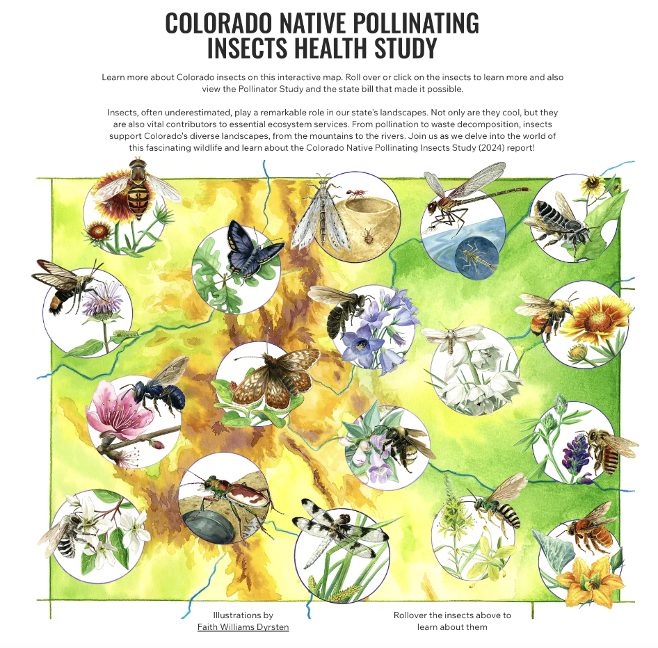 Check out the interactive map of pollinating insects across Colorado. Custom illustrations created for educational materials.
